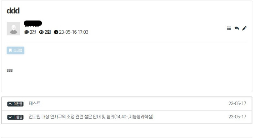 [다음글]에 타학교 교내게시판 게시글이 노출됩니다.